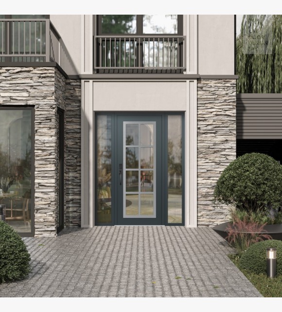 The double-chamber glazing combined with polystyrene insulation reduces heat loss by 40-50% compared to conventional exterior doors: