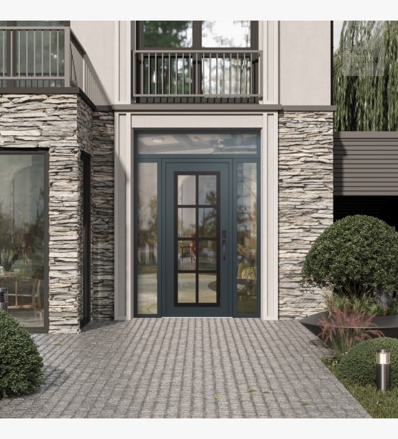The thermal break is exceptional technology based on the fundamental laws of physics. To eliminate heat loss, it separates two metal elements in contact with each other, thereby delimiting the outer cold part of the door from the inner one. Thus, the door is always reliably protected from freezing, and your home retains more heat during the cold season and, vice versa, more coolness during the hot seasons. Since the inner surface of the door and the handle have a temperature close to room temperature, they are pleasant to touch at any time of the year.