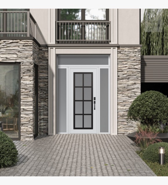 The double-chamber glazing combined with polystyrene insulation reduces heat loss by 40-50% compared to conventional exterior doors: