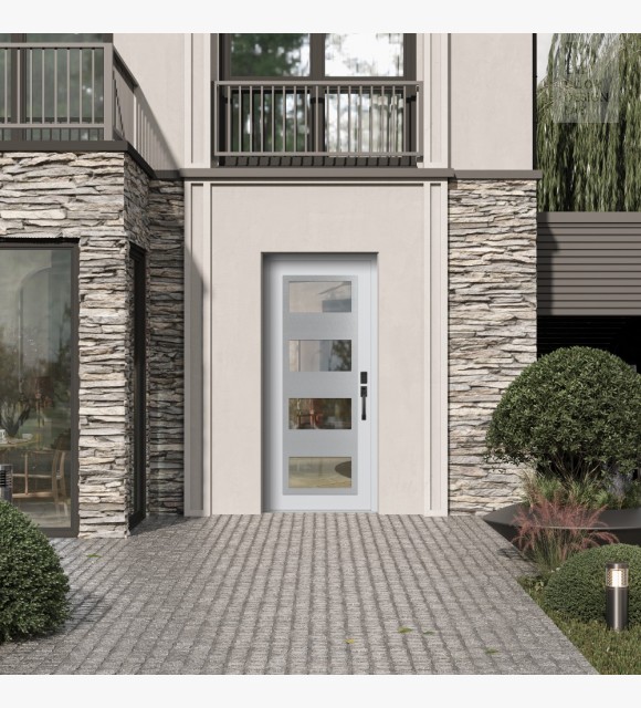 The double-chamber glazing combined with polystyrene insulation reduces heat loss by 40-50% compared to conventional exterior doors: