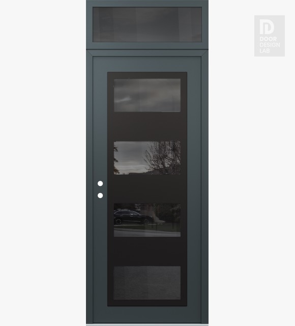 Modern Steel Front Door Diamond C2 36" x 96" anthracite/anthracite mirrored Glass Panel black RHI with Transom mirrored Glass