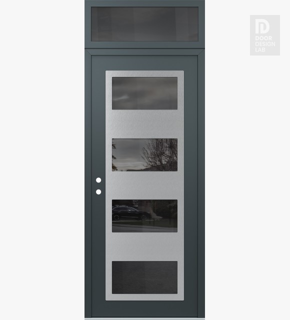Modern Steel Front Door Diamond C2 36" x 96" anthracite/anthracite mirrored Glass Panel stainless steel RHI with Transom mirrored Glass
