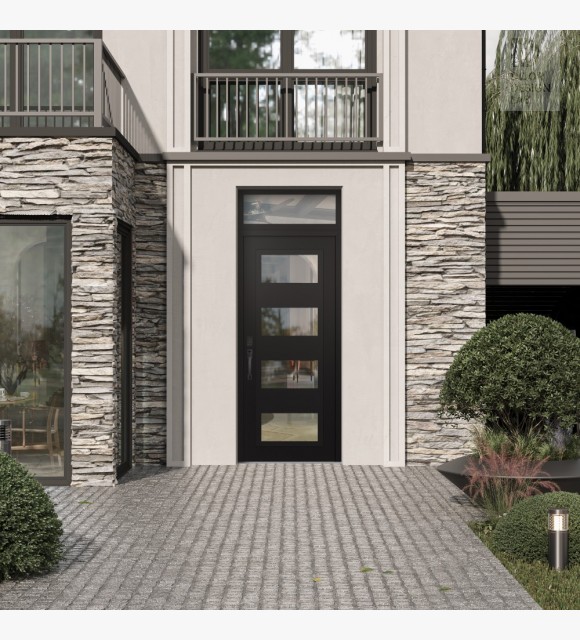 Modern Steel Front Door Diamond C2 36" x 96" black/black clear Glass Panel black RHI with Transom clear Glass