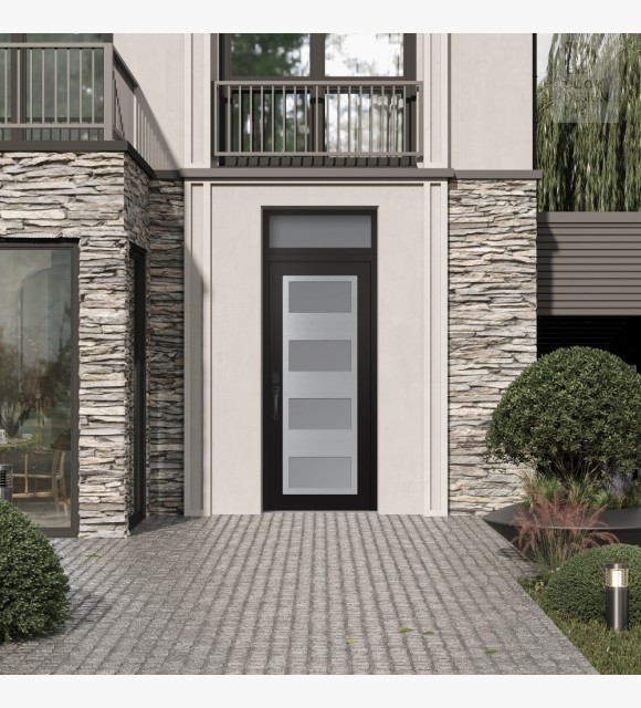 Modern Steel Front Door Diamond C2 36" x 96" black/white frosted Glass Panel stainless steel RHI with Transom frosted Glass