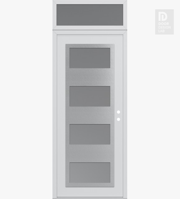Modern Steel Front Door Diamond C2 36" x 96" white/white frosted Glass Panel stainless steel LHI with Transom frosted Glass