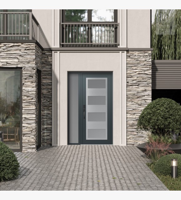 Modern Steel Front Door Diamond C2 48" x 80" anthracite/anthracite frosted Glass Panel stainless steel RHI with Sidelite frosted Glass