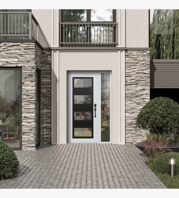 The double-chamber glazing combined with polystyrene insulation reduces heat loss by 40-50% compared to conventional exterior doors: