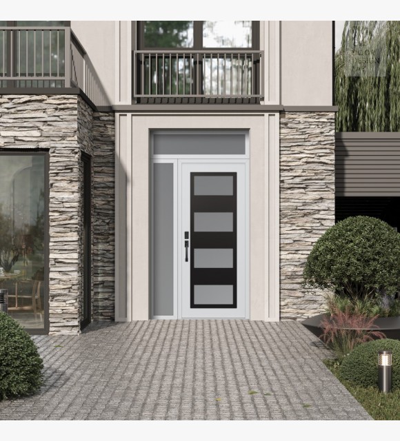 The double-chamber glazing combined with polystyrene insulation reduces heat loss by 40-50% compared to conventional exterior doors: