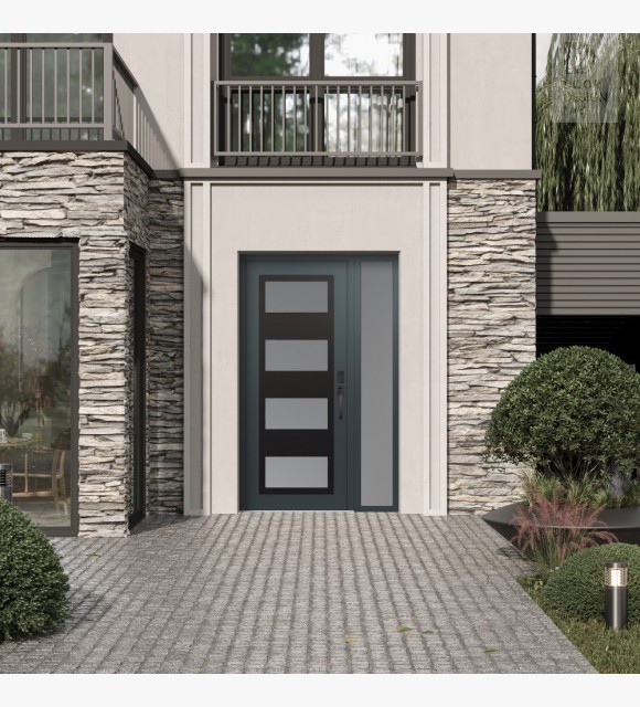 Modern Steel Front Door Diamond C2 52" x 80" anthracite/anthracite frosted Glass Panel black LHI with Sidelite frosted Glass