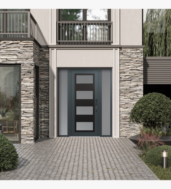 Modern Steel Front Door Diamond C2 60" x 80" anthracite/anthracite frosted Glass Panel black LHI with 2 Sidelites frosted Glass