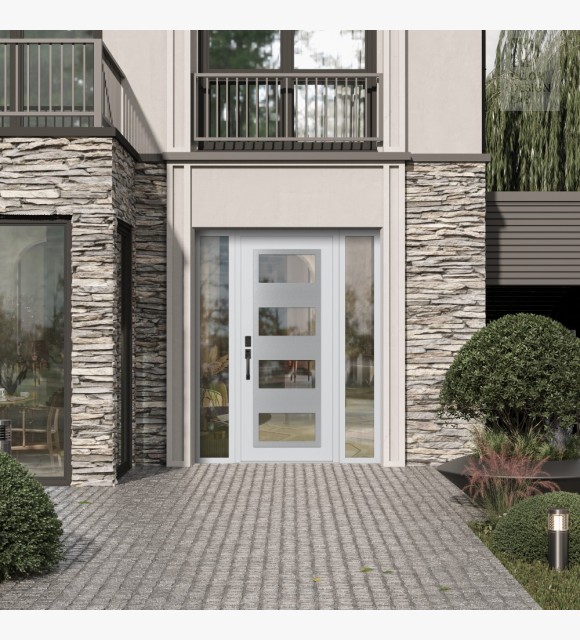 The double-chamber glazing combined with polystyrene insulation reduces heat loss by 40-50% compared to conventional exterior doors: