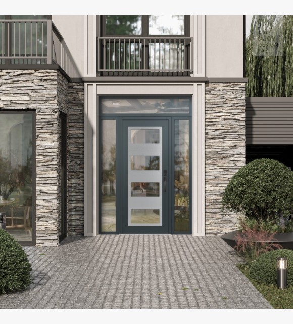 Modern Steel Front Door Diamond C2 64" x 96" anthracite/anthracite clear Glass Panel stainless steel LHI with 2 Sidelites and Transom clear Glass