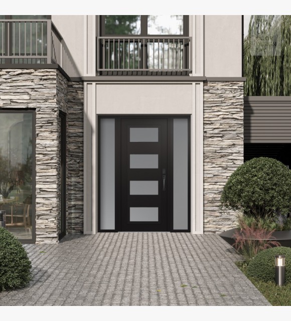 The double-chamber glazing combined with polystyrene insulation reduces heat loss by 40-50% compared to conventional exterior doors: