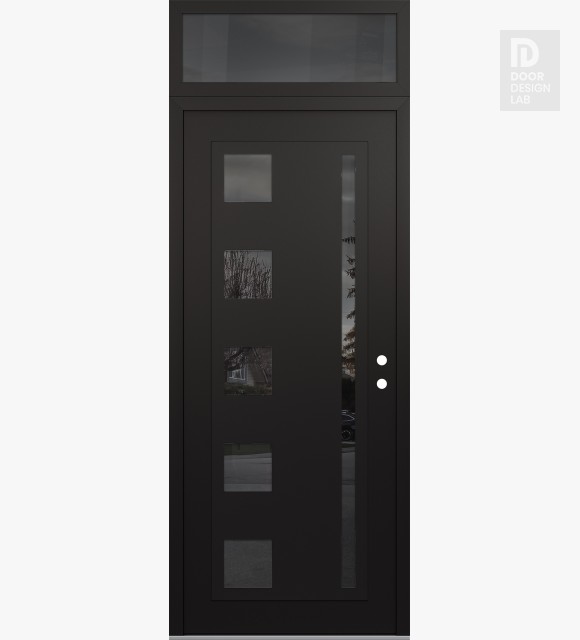 Modern Steel Front Door Diamond C3 36" x 96" black/black mirrored Glass Panel black LHI with Transom mirrored Glass
