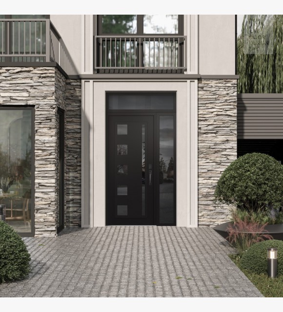 The double-chamber glazing combined with polystyrene insulation reduces heat loss by 40-50% compared to conventional exterior doors:
