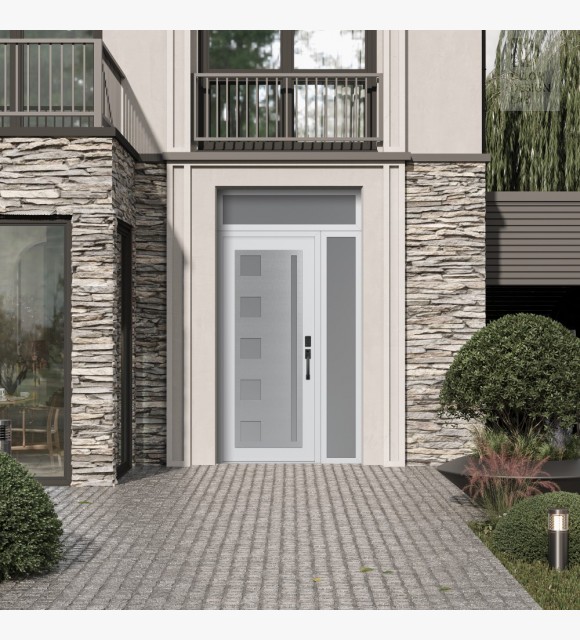 The double-chamber glazing combined with polystyrene insulation reduces heat loss by 40-50% compared to conventional exterior doors: