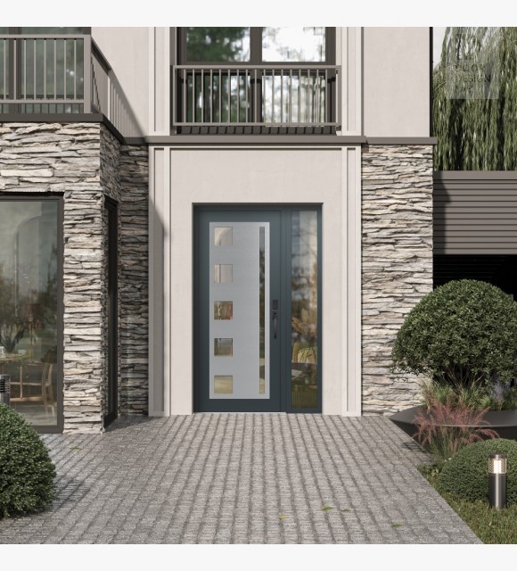 The double-chamber glazing combined with polystyrene insulation reduces heat loss by 40-50% compared to conventional exterior doors: