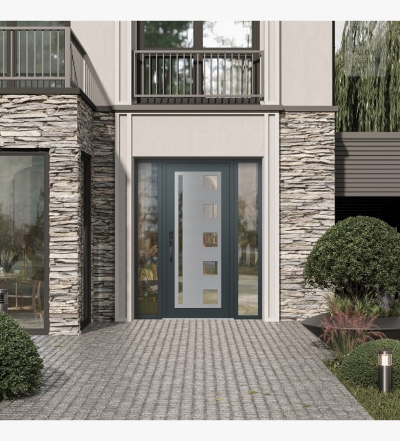 The double-chamber glazing combined with polystyrene insulation reduces heat loss by 40-50% compared to conventional exterior doors: