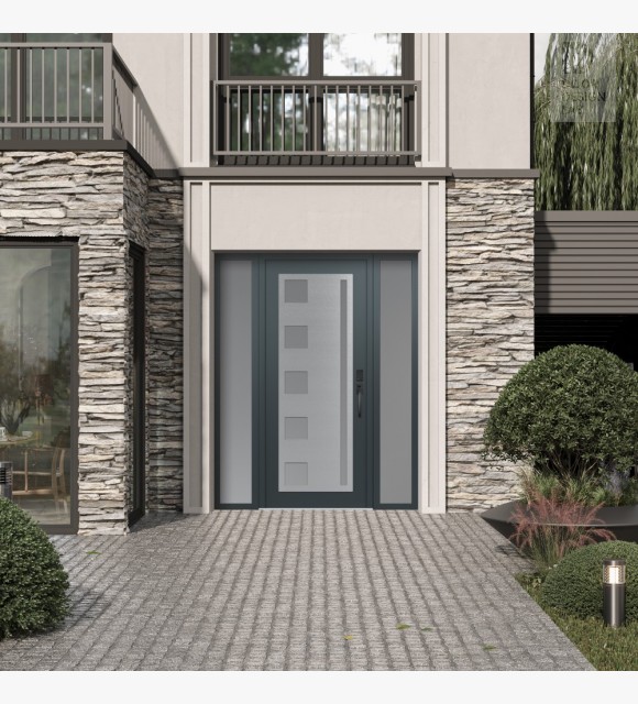 Modern Steel Front Door Diamond C3 60" x 80" anthracite/anthracite frosted Glass Panel stainless steel LHI with 2 Sidelites frosted Glass