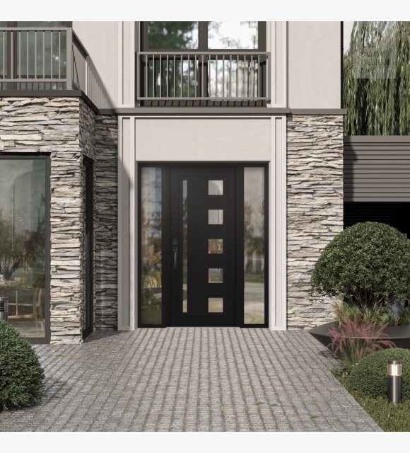 The double-chamber glazing combined with polystyrene insulation reduces heat loss by 40-50% compared to conventional exterior doors: