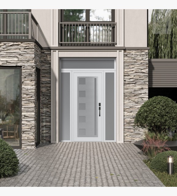 The double-chamber glazing combined with polystyrene insulation reduces heat loss by 40-50% compared to conventional exterior doors:
