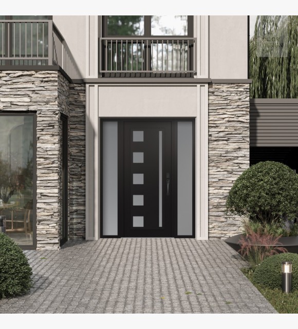 The double-chamber glazing combined with polystyrene insulation reduces heat loss by 40-50% compared to conventional exterior doors: