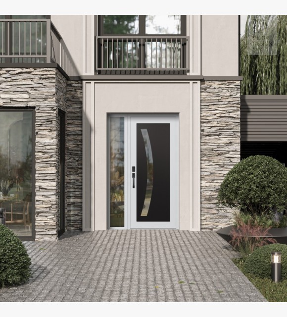 The double-chamber glazing combined with polystyrene insulation reduces heat loss by 40-50% compared to conventional exterior doors: