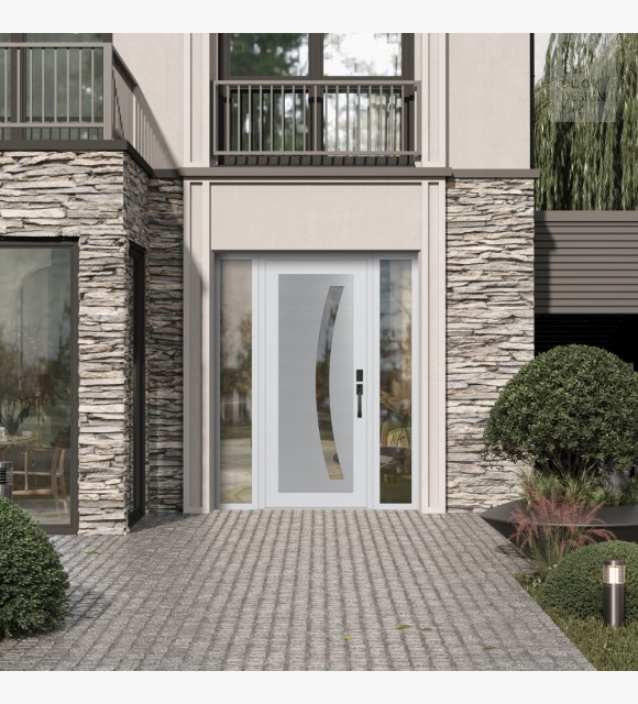 The double-chamber glazing combined with polystyrene insulation reduces heat loss by 40-50% compared to conventional exterior doors: