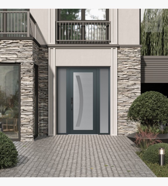 Modern Steel Front Door Diamond C4 68" x 80" anthracite/anthracite frosted Glass Panel stainless steel RHI with 2 Sidelites frosted Glass