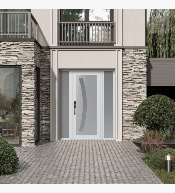 The double-chamber glazing combined with polystyrene insulation reduces heat loss by 40-50% compared to conventional exterior doors: