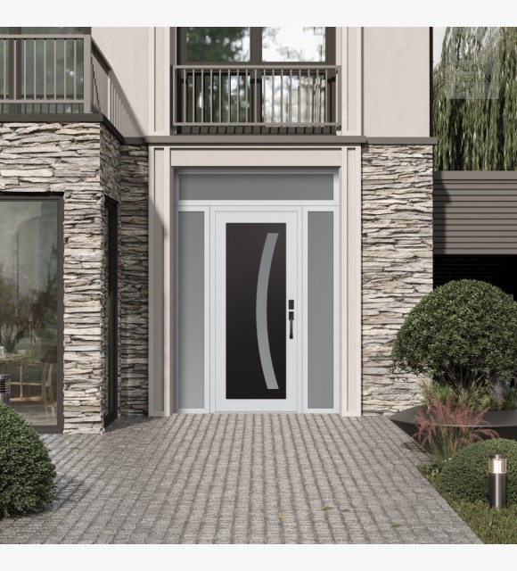 The double-chamber glazing combined with polystyrene insulation reduces heat loss by 40-50% compared to conventional exterior doors: