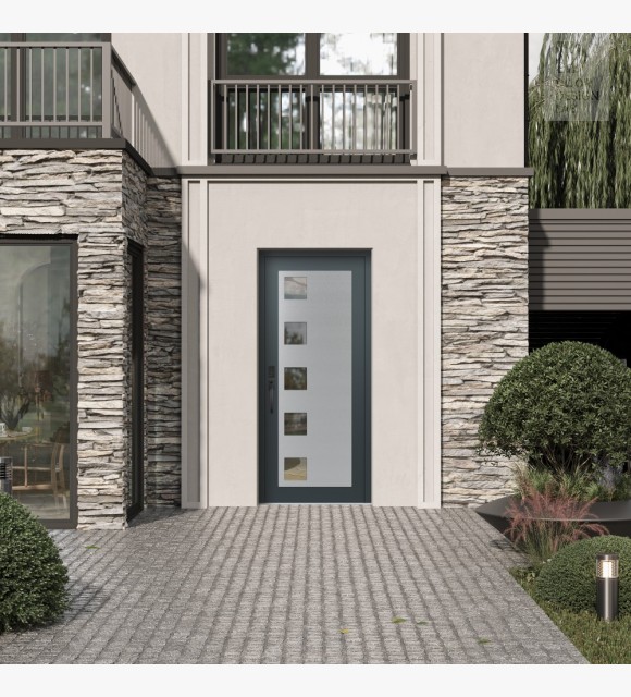Modern Steel Front Door Diamond C5 36" x 80" anthracite/anthracite clear Glass Panel stainless steel RHI
