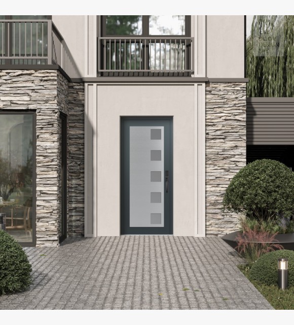 Modern Steel Front Door Diamond C5 36" x 80" anthracite/anthracite frosted Glass Panel stainless steel LHI