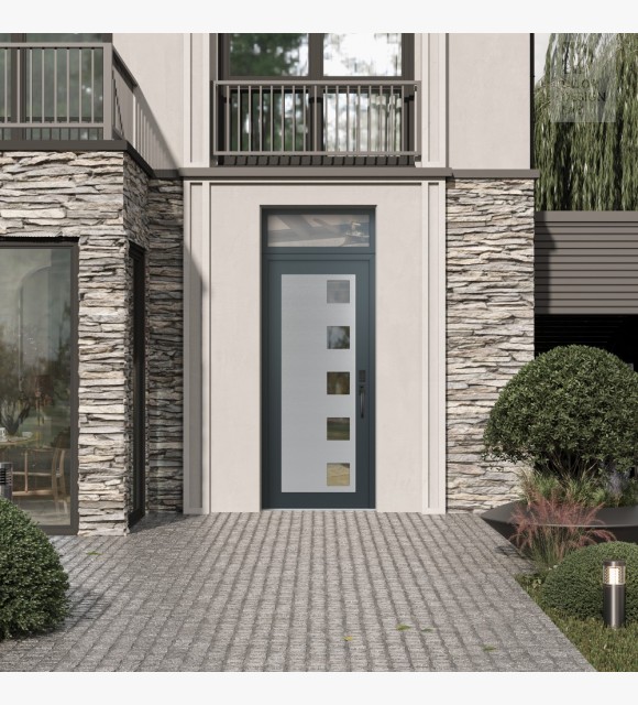 Modern Steel Front Door Diamond C5 36" x 96" anthracite/anthracite clear Glass Panel stainless steel LHI with Transom clear Glass