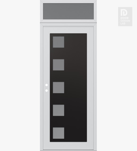 Modern Steel Front Door Diamond C5 36" x 96" white/white frosted Glass Panel black RHI with Transom frosted Glass
