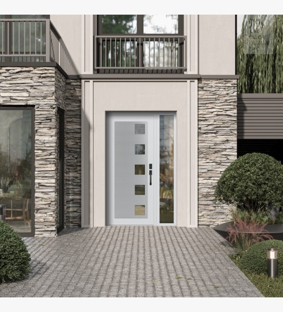 The double-chamber glazing combined with polystyrene insulation reduces heat loss by 40-50% compared to conventional exterior doors: