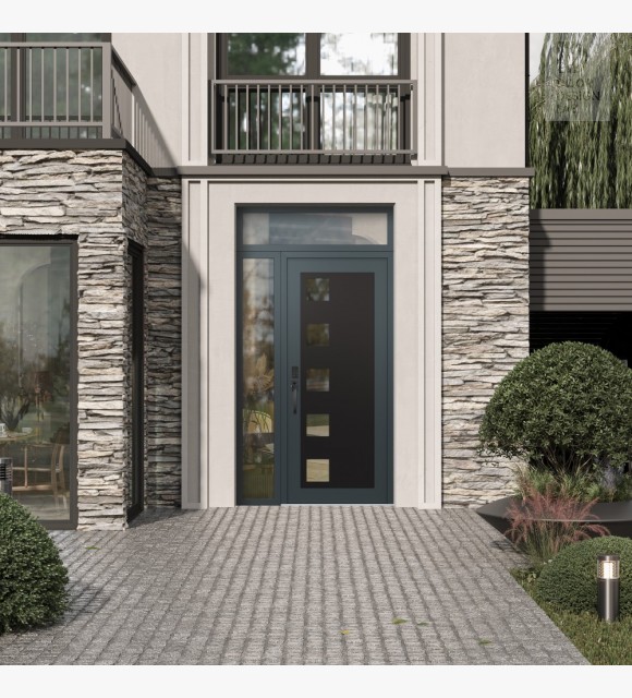 Modern Steel Front Door Diamond C5 50" x 96" anthracite/anthracite clear Glass Panel black RHI with Sidelite and Transom clear Glass