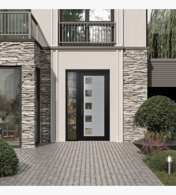 The double-chamber glazing combined with polystyrene insulation reduces heat loss by 40-50% compared to conventional exterior doors:
