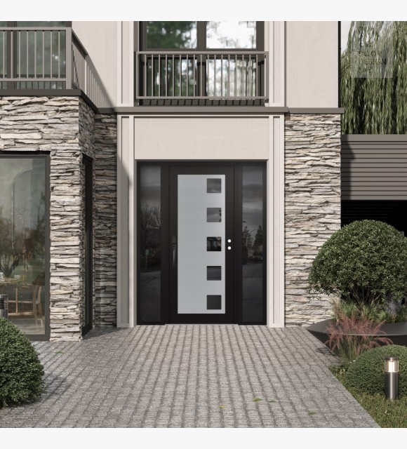 The double-chamber glazing combined with polystyrene insulation reduces heat loss by 40-50% compared to conventional exterior doors: