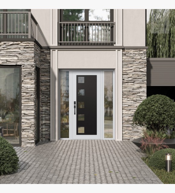 The double-chamber glazing combined with polystyrene insulation reduces heat loss by 40-50% compared to conventional exterior doors: