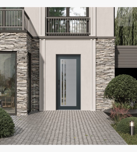 Modern Steel Front Door Diamond C6 36" x 80" anthracite/anthracite clear Glass Panel stainless steel RHI
