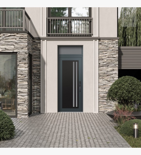 Modern Steel Front Door Diamond C6 36" x 96" anthracite/anthracite frosted Glass Panel black LHI with Transom frosted Glass
