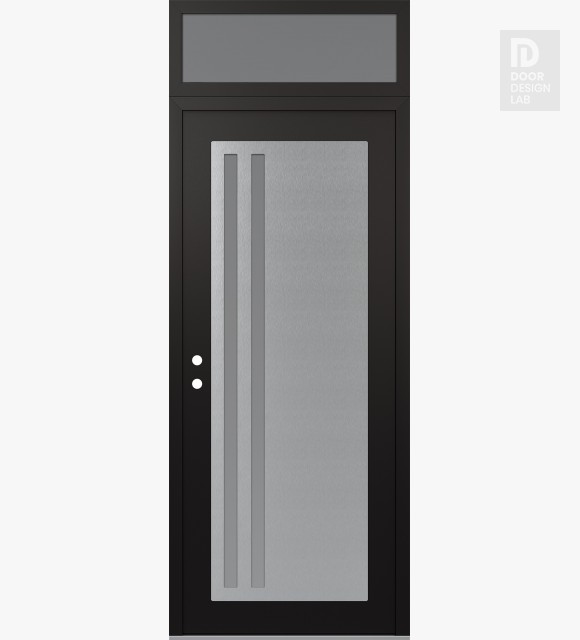 Modern Steel Front Door Diamond C6 36" x 96" black/white frosted Glass Panel stainless steel RHI with Transom frosted Glass
