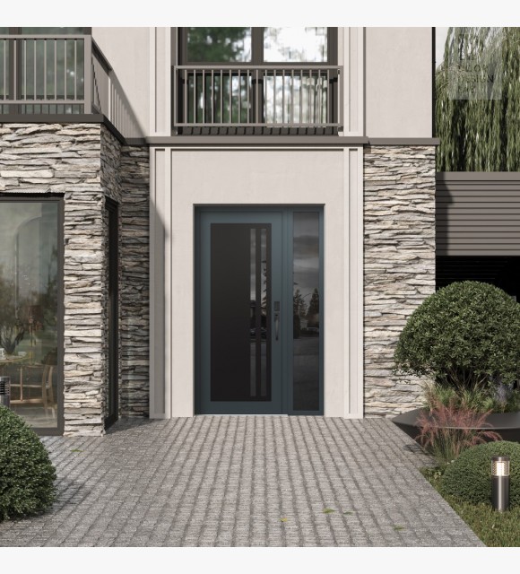 The double-chamber glazing combined with polystyrene insulation reduces heat loss by 40-50% compared to conventional exterior doors: