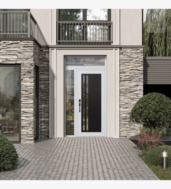 The double-chamber glazing combined with polystyrene insulation reduces heat loss by 40-50% compared to conventional exterior doors: