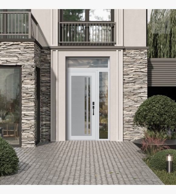 The double-chamber glazing combined with polystyrene insulation reduces heat loss by 40-50% compared to conventional exterior doors: