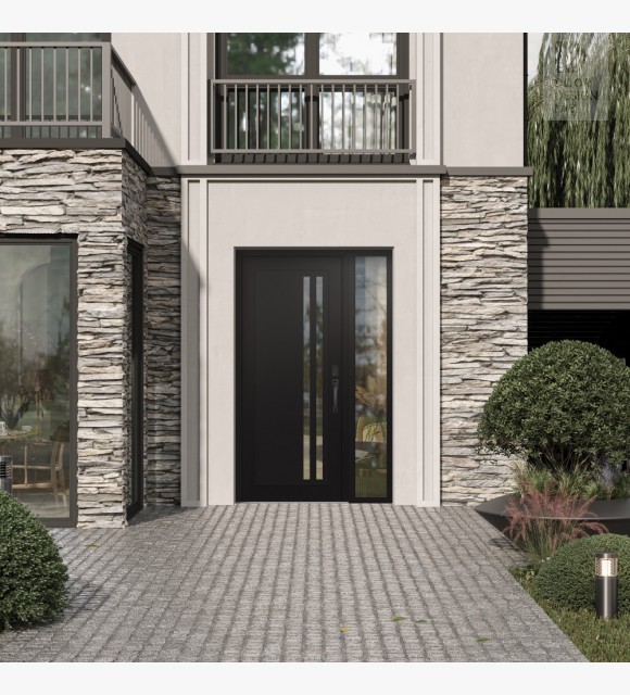 The double-chamber glazing combined with polystyrene insulation reduces heat loss by 40-50% compared to conventional exterior doors:
