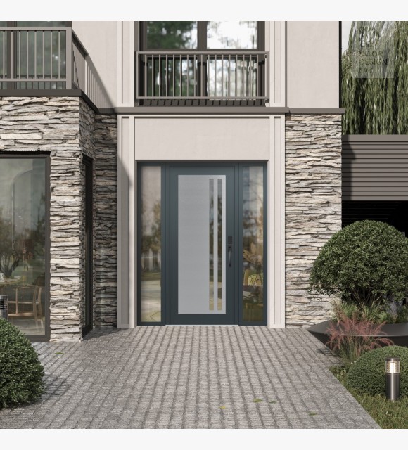 The double-chamber glazing combined with polystyrene insulation reduces heat loss by 40-50% compared to conventional exterior doors: