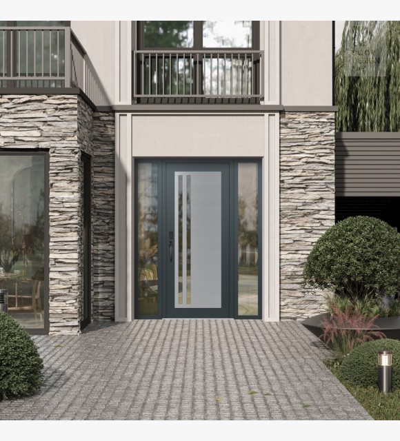 Modern Steel Front Door Diamond C6 60" x 80" anthracite/anthracite clear Glass Panel stainless steel RHI with 2 Sidelites clear Glass
