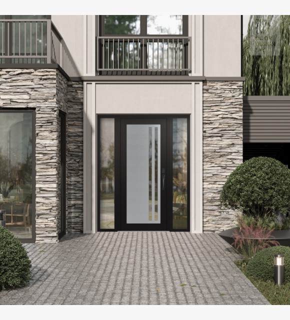 The double-chamber glazing combined with polystyrene insulation reduces heat loss by 40-50% compared to conventional exterior doors: